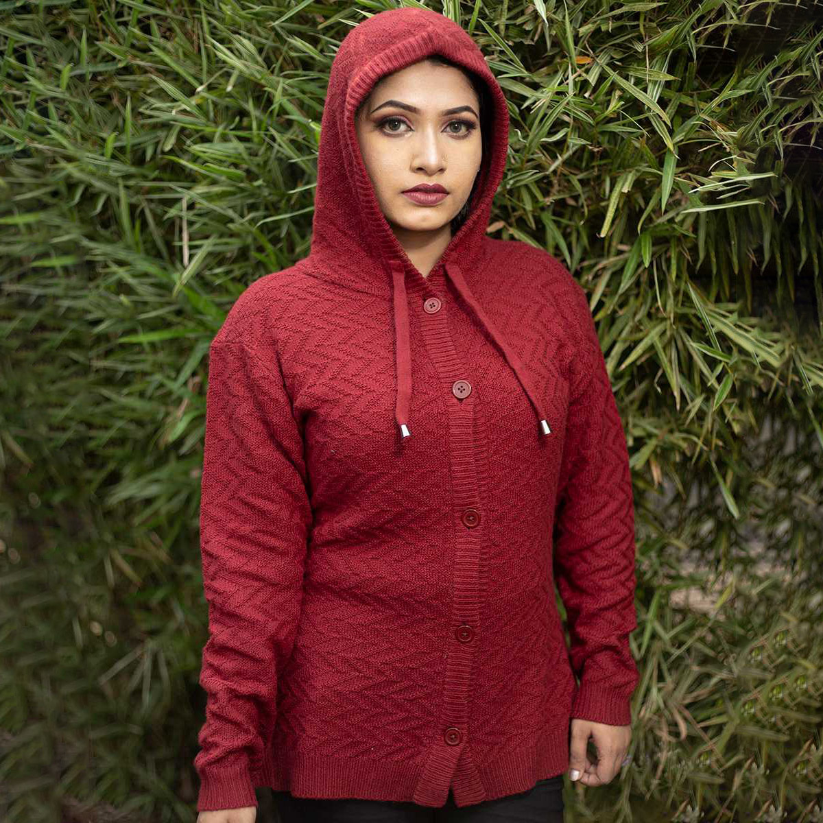 Stay cozy and stylish with this Classic Grey Knitted Hoodie Cardigan — designed for both comfort and elegance. Made from premium acrylic wool blend, it offers warmth and softness perfect for cooler days. The cardigan features a front button closure, adjustable drawstring hood, and ribbed cuffs & hem for a snug fit. The subtle chevron knit pattern adds texture and sophistication to your everyday look.