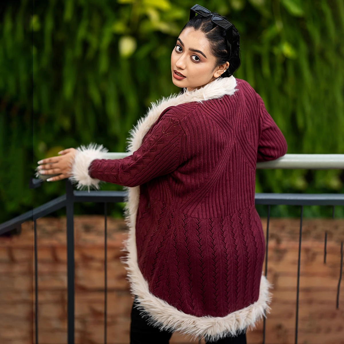 Experience ultimate winter elegance with this Luxury Wine Fur-Lined Open Knit Cardigan, designed to keep you warm in pure style. Made from premium acrylic wool, it features soft faux fur lining along the collar, cuffs, and hem — giving a plush, luxurious feel. The open-front design ensures easy layering, while the rich wine color adds sophistication to your winter look. Perfect for cozy evenings, parties, or outdoor wear during chilly days.