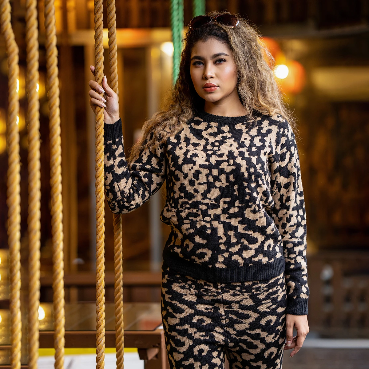 Stay cozy and stylish this winter with our Leopard Knit Co-ord Set. Made from soft, stretchable fabric, this two-piece outfit features a trendy black-and-beige animal print design. Perfect for casual outings, coffee dates, or relaxed evenings — it’s the perfect blend of comfort and bold fashion. Pair it with nude heels or boots for a chic winter-ready look.